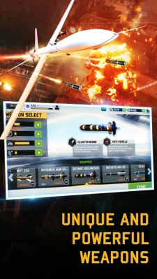 Operate the world’s best UCAVs and shoot your way through a series of action-filled covert missions, using ultra-high-tech equipment and weapons including rockets, missiles, Bombs, gunships, cannons, etc. Disrupt the enemy control, provide close Air Support, and raid Enemy Bases worldwide before they take you out.
