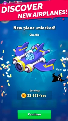 - combine same airplanes to level-up - fly to earn money and buy new airplanes - each airplane earns you money, even when you are offline - easy to play, one finger game - cute graphic