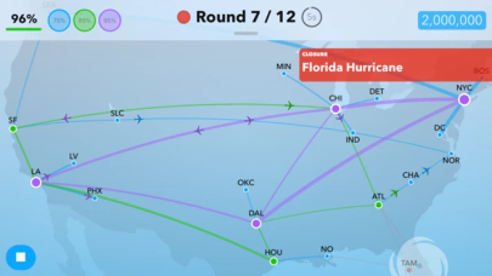 Step into the world of airline route planning, where your goal is to create a flight network to guide passengers to their destinations in a limited amount of time. You get to call the shots on which routes to draw and which cities to designate as hubs that best serve each scenario. The flight maps you design will also need to be efficient and flexible to accommodate for events that may occur, like airport rushes and closures, as its effects ripple throughout your network. With over 350 geographically and historically themed levels to play, each map you make will be put to the test.