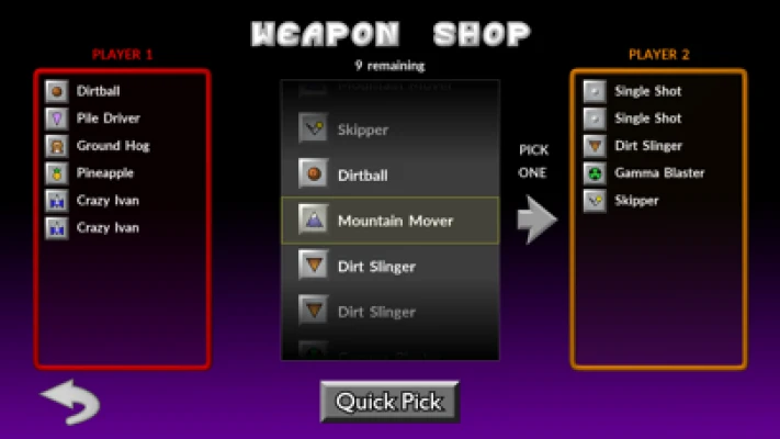 Experience the thrill of launching volley after volley of powerful and fun weapons across the battlefield, using very simple controls. Select your angle, power, and FIRE! Your arsenal of unique and useful weapons includes: Napalm, Firecracker, Skipper, Cruiser, Dirt Mover, and dozens more! This is the light-hearted game of heavy artillery for everyone.