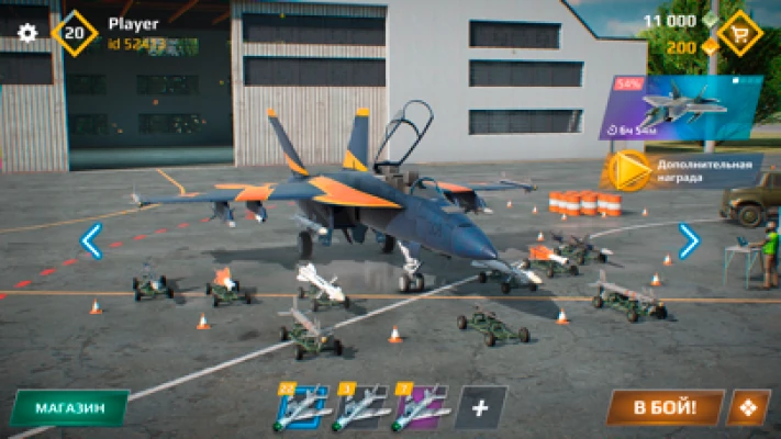 Equip your jet with the latest gear! Choose weapons and equipment to get even stronger! Build your own one-of-a-kind jet!