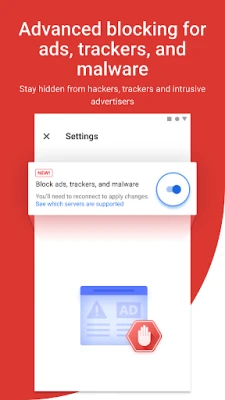 The Automatic VPN feature helps identify potential risks within your network connection. When connecting to unsecure networks, Trend Micro VPN is automatically turned on in an instant. This feature leverages a foreground service to ensure continuous protection and enables the app to provide real-time security notifications. Even when the app is not actively in use, it continuously monitors network conditions to instantly secure your connection whenever threats are detected.