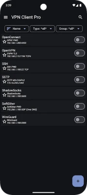 With this app you will able to connect to any OpenVPN (TUN/TAP), SSTP, WireGuard, AmneziaWG, SoftEther, ShadowSocks, SSH Tun (ssh -w option with support for TUN and TAP), OpenConnect (ocserv) servers and Cisco AnyConnect SSL gateways.