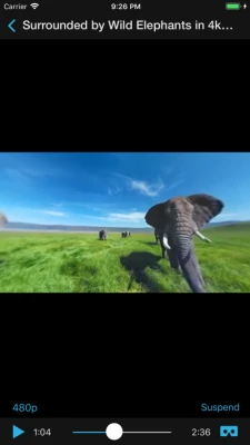- 2D (Normal), 3D (Spherical) or VR (Cardboard) video modes.