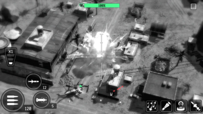 • Fire 25mm Gatling guns, launch Hydra 70 rockets, and deploy Hellfire missiles to wipe out enemy squads.